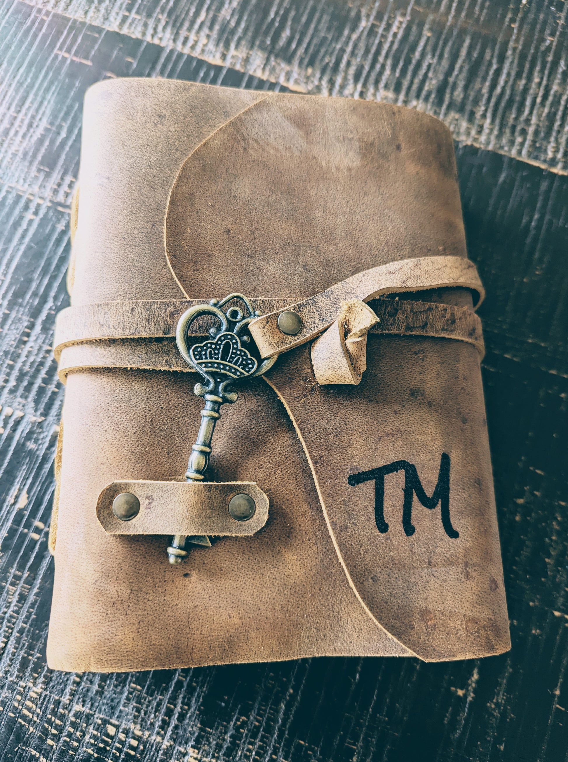 Customized Vintage Soft Leatherbound Brown Journal with Antique Key